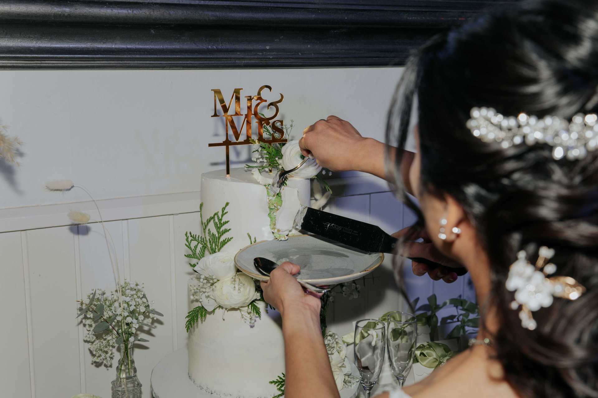 Afterward, everyone continued the celebration at the reception venue. The evening included the couple’s arrival and welcome, the first dance, heartfelt toasts, joyful dancing, and of course the cake cutting. The celebration felt lively, emotional, and beautifully balanced throughout the evening.